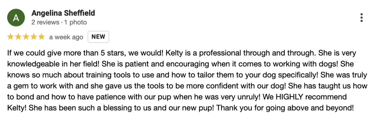 🐾 Next-Step Training Recommendations If we’re the right fit, you’ll know exactly what comes next to turn your dog into the well-behaved pet you’ve always wanted.